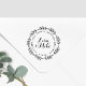 Maßgeschneiderte, kreisförmige, selbstfarbende Rücksendeadresse-Briefmarke mit handgezeichnet botanischem Kranz und eleganter Handkalligraphie. Ideal, um Ihren Hochzeitsaufenthalten, Karten, Favoriten und Geschenken eine Touch rustikalen Stils hinzuzufügen.