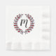 Laurel Wreath mit benutzerdefiniertem Monogram Letter M, Sie können den Buchstaben ändern oder löschen, Rot und Weiß Streifen Elegantes Party Napkins