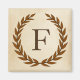 Ein zarter Lorbeerkranz ist auf einem Pergamentpapier-Hintergrund im klassisch römischen Stil geschichtet. Dieses Design ist personalisiert mit dem Monogramm "F" in einem reichen sienna Ton.
