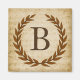 Ein zarter Lorbeerkranz ist auf einem Vintagen Notenhintergrund im klassisch römischen Stil geschichtet. Dieses Design ist personalisiert mit dem Monogramm "B" in einem reichen sienna Ton.