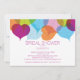 Jolie invitation à la douche nuptiale avec des feuilles en forme de coeur dans le violet, le vert, l'orange et le bleu sur un arrière - plan blanc moderne et élégant. Retourner notre invitation unique à la douche mariage de automne d'automne pour voir un retour assorti pour une touche spéciale.