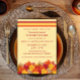 Invitations amis et famille à votre dîner annuel de moisson avec cette invitation très attrayante Thanksgiving avec un faux arrière - plan texturé papier parchemin, rayures en rouge, orange et jaune, et un tas de feuilles chauds de couleur automne. Facile à customiser, ajoutez simplement les détails de votre dîner dans les champs fournis. Cliquez sur le bouton "Customiser" pour trouver d'autres options de personnalisation.