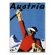 Affiche vintage de voyage pour l'Autriche dans un style illustratif d'art déco favorisant des sports de ski et d'hiver.