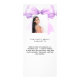 Carte menu fête d'anniversaire. Personnalisez et ajoutez un nom, un âge, une date et le menu. Un arrière - plan blanc et une grande lavande, un arc de couleur violet. Retour : ajouter une photo de la fille d'anniversaire, faits amusants