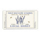 Étiquette d'ivoire pâle avec bordure en pointillés bleus et illustration de lavande vintage avec abeilles. Texte bleu