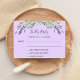 Un arrière - plan violet, du texte noir. Décoré de fleurs de lavande et de verdure d'eucalyptus. Personnalisez et ajoutez une réponse par date. Dos : Violet couleur arrière - plan.