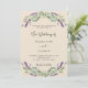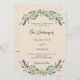 Beigefarbener Hintergrund mit Lavendel-Blume und Eukalyptusgrün. Personalisieren und Ihre Namen und Details. Zurück: Fügen Sie Ihre Hochzeitswebsite url zum QR-Code für Details und/oder UAWG hinzu.