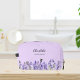 Violetter Hintergrund. Mit Lavendel-Blume dekoriert. Personalisieren Sie Ihren Namen und fügen Sie ihn hinzu.