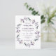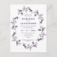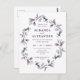 Die Hochzeitspostkarte bietet einen lebendigen Blumenkranz mit grünen und lila Blume- und Blattelementen. Der gesamte Text kann individuell angepasst werden. Diese Einladung ist Teil einer Sammlung.