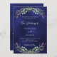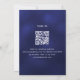 Marineblau mit Lavendel-Blume und Eukalyptusgrün. Die blaue Farbe ist ungleichmäßig. Personalisieren und Ihre Namen und Details. Zurück: Fügen Sie Ihre Hochzeitswebsite url zum QR-Code für Details und/oder UAWG hinzu.