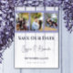 Mit dieser schlichten und eleganten Lavendel-Holzwolle kündigen Sie Ihr Hochzeitstag Save the Date an. Das Design der Ankündigung bietet einen Holzboden und Platz für drei Fotos des glücklichen Ehepaares, das mit einem modernen Textdesign ausgestattet ist.