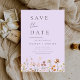 Verkünden Sie Ihre Hochzeit im Stil mit diesem Lavendel lila Wildblumen boho Save the Date Karte. Mit einem weichen Lavendelhintergrund, skurrilen Illustrationen zur Wildblume und eleganter moderner Typografie verbindet dieses Design rustikalen Charme mit romantischer Eleganz. Es ist mit Ihren Hochzeitsdetails vollkommen anpassbar und eignet sich ideal für Frühjahr- und Sommerhochzeiten, Gartenfeiern, rustikale Chic-Events und böhmisch-inspirierte Themen. Eine schöne und zeitlose Art, Ihren besonderen Tag zu teilen.