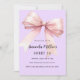 Ein weicher Lavendel, lila Hintergrund, mit einem großen rosa Bogen verziert. Personalisieren und fügen Sie einen Namen und Party-Details hinzu.