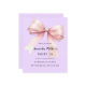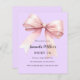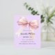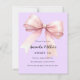 Ein weicher Lavendel, lila Hintergrund, mit einem großen rosa Bogen verziert. Personalisieren und fügen Sie einen Namen und Party-Details hinzu. 1 Blatt = 1 Einladung mit Druckkante bis Kante.