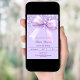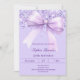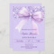 Ein Lavendel, violetter Hintergrund, mit einem großen Bogen und Konfetti dekoriert. Personalisieren und fügen Sie einen Namen und Party-Details hinzu.