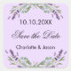 Lavendel violette Hochzeit Sichern Datum Quadratischer Aufkleber