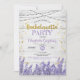 Tous les textes sont modifiables (sauf la "Bachelorette" dorée) Belle lavande aquarelle sur arrière - plan de bois rustique, avec confettis d'or et lumière romantique à cordes. Décoré de motif en dentelle sur le dos. Obtenez cette belle invitation élégante dès maintenant!