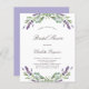 Weiß mit Lavendel-Blume und Eukalyptusgrün dekoriert. Personalisieren und einen Namen und Details. Zurück: Lavendel, violetter Hintergrund. 1 Blatt = 1 Einladung mit Druckkante bis Kante.
