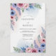Delicate watercolor washes in soft pink and blue hues evoke a romantic, airy feel. Lush floral arrangements feature roses, peonies, and trailing greenery in shades of lavender and blush. This design offers a dreamy, sophisticated aesthetic.