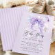 Feiern Sie die Ankunft Ihres kleinen Mädchens mit unserer exquisiten Lavendel-Baby-Dusche, entworfen, um zu verzaubern und zu erfreuen. Mit einem charmanten lila lavendelfarbenen Coquette Blumenband-Bogen-Set vor weichem, lila Hintergrund, vereint diese Einladung perfekt das Wesen einer fröhlichen und eleganten Feier. Sein zartes Design Set nicht nur den Ton für Ihre besondere Veranstaltung, sondern lädt auch Ihre Gäste ein, an der Begeisterung Ihres neuen Freudenbündels teilzunehmen. Machen Sie Ihre Babydusche unvergesslich mit dieser wunderschön gestalteten Einladung, die Ihre Liebe und Vorfreude widerspiegelt.