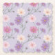 Dieser Untersetzer ist mit Kosmos-Blume in Rosa, Lavendel und Weiß gestaltet. Der Hintergrund ist eine Lavendelfarbe. Das Blumenmuster hat eine sanfte, romantische Ästhetik. Die Untersetzer sind lavendelfarbene Untersetzer. Der Untersetzer ist eine geschmolzene quadratische Form. Es sind sechs Untersetzer im Untersetzer Set.