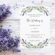 A white background decorated with lavender flowers and eucalyptus greenery. Personalize and your names and details.