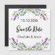 Ein Magnet für Ihre Hochzeitsgäste speichern. Ein stilvoller weißer Hintergrund mit lavendelfarbenen Blume und Eukalyptusgrün. Personalisieren und fügen Sie Ihre Namen und Hochzeitsdatum.