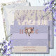 Lavender Fields of Blue Western Wedding Invitation ist eine wunderschöne, romantische Hochzeitseinladung mit Pastelltönen von Blues und Lavendel mit einem Western Stil und Schreibwaren Suite. Die Front bietet einen pastellblauen Western-Hintergrund mit einer individuellen Einladung in modernen Schriftart im Western-Stil. Top of card verfügt über ein Logo im Stil eines Westerns, das alle mit Ihren eigenen Markeninitialen individuell gestaltet werden kann. Die Rückseite der Karte zeichnet sich durch einen pastellblauen Himmel und ein wunderschönes Aquarellmuster mit botanischen Lavendel-Blume aus. Kombinieren Sie dieses wunderschöne Lavendel Fields of Blue Western Wedding Invitation mit dem wunderschönen Koordinations-Umschlag, uAwg und Gehäuse Detailkarten für eine unvergessliche romantische Western Hochzeitssuite. Lesen Sie unsere Lavender Fields Western Wedding Collection für mehr Schreibwaren, Tisch und Empfang Ideen, um Ihren besonderen Tag zu vervollständigen.