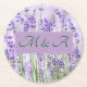 Diese runden Untersetzer mit weicher Lavendel und grün inspiriert von der Schönheit der ländlichen Lavendel Blume haben einen Platz für individuelle Name für Ihre Hochzeitsfeier.
