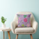 A charming throw pillow featuring a colorful floral and leaf pattern on a soft lavender background. The lively mix of pink, purple, green, and yellow botanical elements adds a fresh and playful touch to any room. Perfect for living rooms, bedrooms, nurseries, reading nooks, or as a bright accent piece. Ideal for anyone who loves nature-inspired décor, pastel colors, and artistic floral patterns.