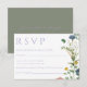 Donnez le ton de votre mariage dans le jardin avec cette carte RSVP élégante avec du texte lavande et des fleurs sauvages peints à la main dans des tons vert et jaune doux. Le dos vert sauge apporte une touche subtile et naturelle, idéale pour les mariages du printemps ou de l'extérieur. Cette carte de réponse florale comprend de l'espace pour les préférences de repas et les demandes de chant, alliant charme et fonctionnalité.