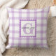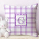 Dekorieren Sie Ihr Kinderzimmer mit diesem charmanten Kissen, das mit einem süßen Lavendel und einem weißen Gingham-Muster mit trendigen Skallopierten Kantendetails, spielerischen Polka-Punkten und einem individuell anpassbaren Monogramm besticht. Dieses schlichte Design ergänzt jeden Dekorstil und macht es zu einer vielseitigen Ergänzung zu einem Kinderzimmer- oder Kinderzimmer. Passen Sie dieses Design mit einem Initial und Namen an, um dem Raum eines jungen Mädchens eine persönliche Touch hinzuzufügen.