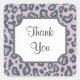 Ein Lavendel- und Grauleopardenmuster schmückt diesen Dankeschön-Aufkleber. Verwenden Sie diese Aufkleber für Umschläge, Taschen, Produkte, Geschenktaschen, ein Party, Business, etc...Das Design stammt aus der Originalkunst.