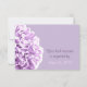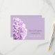Dies ist eine hübsche Hochzeitskarte, mit einem atemberaubenden Foto einer Blume aus leichter Lavendel vor Lavendelviolett-Hintergrund. Ihre Informationen sind in dunkleren violett, mit dem Datum zu antworten in hellen Lavendel. Der gesamte Text ist leicht angepasst, also sagen Sie, was Sie wollen! Der Rücken passt gut zu Lavendel, mit den Entscheidungen des Befragten. Diese Ankündigung ist besonders elegant für den Frühling oder Sommer, und passt zu den "Lavender Peony Formal Wedding Einladungen" in unserem Geschäft.