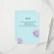 A light blue response card featuring centered black text for guest attendance and dietary requirements, accented by soft purple roses in the bottom corners. elegant lavender rose rsvp, light blue response card, floral wedding reply card, botanical guest response stationery, centered rsvp text layout.