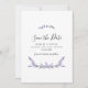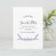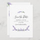 Country Lavender Save the Date Einladung. Entworfen mit lila handbemalten Lavendelwaschern-Blume mit Aquarellstilisierung. Passen Sie dieses Design mit Ihrem Namen, Ihrem Hochzeitsdatum und jeder anderen benutzerdefinierten Nachricht an, die Sie einschließen möchten! Die Hintergrundfarbe ist Set zu Weiß, Sie können jedoch eine Füllfarbe Ihrer Wahl wählen.