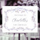 Ce panneau d'accueil de 1er anniversaire (affiche) présente un cadre fleuri de lavande orné de papillons et de rubans. Pour une personnalisation plus avancée de cette conception, cliquez sur le BOUTON DESIGN TOOL ci-dessus ! Des articles correspondants sont également disponibles.