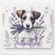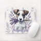 Eine hübsche, von Hand gezeichnet Abbildung eines Jacks Russell Terrier, der einen Lavendel hält.