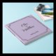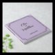 Gästebuch in sanften Lilatönen mit Goldfolie-Schriftzeichen und Serifenschrift-Schriftart, mit den Namen der Ehepaare und dem Hochzeitstag in einem Goldrahmen an der Vorderseite und einigen Initialen an der Rückseite