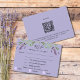 Un arrière - plan violet, du texte noir. Décoré de fleurs de lavande et de verdure d'eucalyptus. Personnalisez et ajoutez la réponse par date et sélections de menu. Retour : arrière - plan violet. Ajoutez l'URL de votre site Web mariage au code QR pour plus de détails