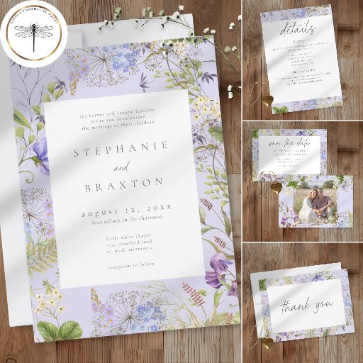 Announce your day with this Lavender Wildflower Garden Romantic Wedding Invite, featuring delicate watercolor florals on a light lavender purple background. Perfect for a spring or summer garden wedding, this beautiful design offers a whimsical and natural aesthetic. This romantic invitation is fully customizable and sets a lovely, soft tone for your celebration. Created by Simply Farmhouse Press.