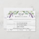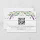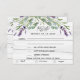Bois blanc rustique comme arrière - plan, texte noir. Décoré de fleurs de lavande et de verdure d'eucalyptus. Personnalisez et ajoutez une réponse par date. Ajoutez vos sélections/choix de menu. Retour : ajoutez l'URL de votre site Web mariage au code QR pour plus de détails et/ou RSVP