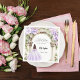 Ein großer Marmorbogen mit lavenfarbenen Blumen. Ein Mädchen mit einem Lavendelkleid. Personalisieren und fügen Sie einen Text, Namen, Datum.
