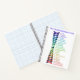 This notebook features a spiraling rainbow tornado, representing Abraham-Hicks concept of the emotional guidance scale. All along the scale, in a rainbow serif font, are all the emotions on the scale: Love, Passion, Happiness, Positive Expectation, Optimism, Hopefulness, Contentment, Boredom, Pessimism, Frustration, Overwhelment, Disappointment, Doubt, Worry, Blame, Discouragement, Anger, Revenge, Rage, Jealousy, Guilt, and Fear. Art is on a white background.
