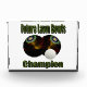 Dargestellt sind zwei farbige Rasenschüsseln mit einem Jack und die Worte Future Rasen Schüsseln Champion