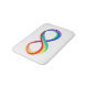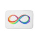 Helles Symbol der Unendlichkeit aus Plastikschichten rot, gelb, grün, türkis, blau und lila gesättigt Farben auf weißem Hintergrund.