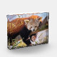 Der rote Panda ist etwas größer als eine Hauskatze mit einem bärenhaften Körper und dickem, rustikalem Fell. Der Bauch und die Gliedmaßen sind schwarz, und es gibt weiße Markierungen auf der Seite des Kopfes und über seinen kleinen Augen. Rote Pandas sind sehr geschickte und akrobatische Tiere, die überwiegend in Bäumen bleibe werden. Fast 50% des Lebensraums des roten Panda liegt im östlichen Himalaya. Sie nutzen ihre langen, buschigen Schwänze, um sich im Winter auszubalancieren und sich selbst zu bedecken, vermutlich für Wärme. Hauptsächlich ein Pflanzenfresser, der Name Pfanne