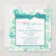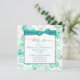 L'élégante invitation au baby shower d'un couple carré faite dans un motif de cachemire coloré, turquoise, aqua, vert menthe et rose. Les graphiques d'une zone de texte blanc à bordure turquoise, au milieu, ont un ruban et un arc assez turquoises, au sommet. L'arrière est fait dans le même motif paisley coloré, avec l'arc, au milieu, et une balise pendue vers le bas, pour le texte. Personnalisez tout le texte, avant et arrière pour répondre à vos besoins. Idéal pour les douches de sexe masculin, pour les jumeaux ou pour les douches de sexe inconnu.
