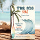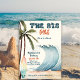 Faites le tour de la vague pour fêter un premier anniversaire ! Cette invitation à la plage, inspirée du surf, présente des vagues de l'océan, des palmiers et une ambiance tropicale décontractée, parfaite pour un petit surfeur !