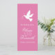 Colombes blanches simples doubles faces avec le menu rose de dîner de réception de mariage de deux rubans. Uniquement conçu par Sarah Trett.